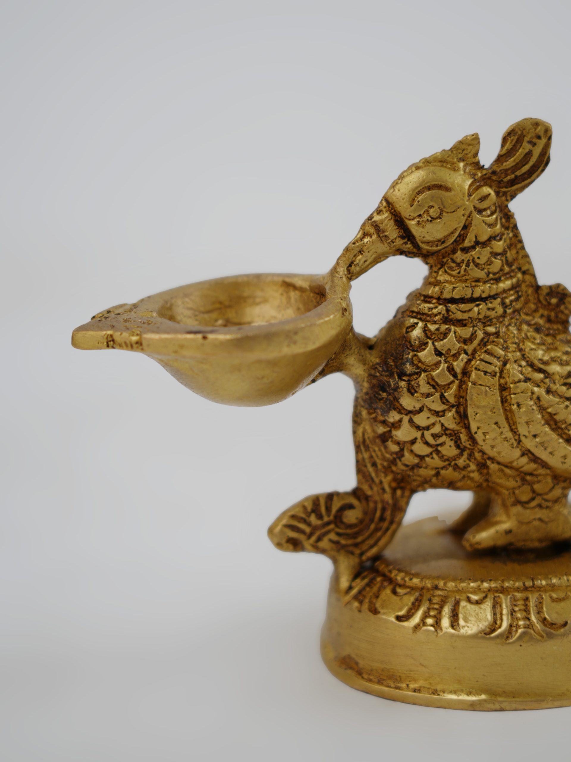 Copper Peacock Oil Lamp Container Vermilion Cone Incense Burner for Offering Sacrificial Candlesticks