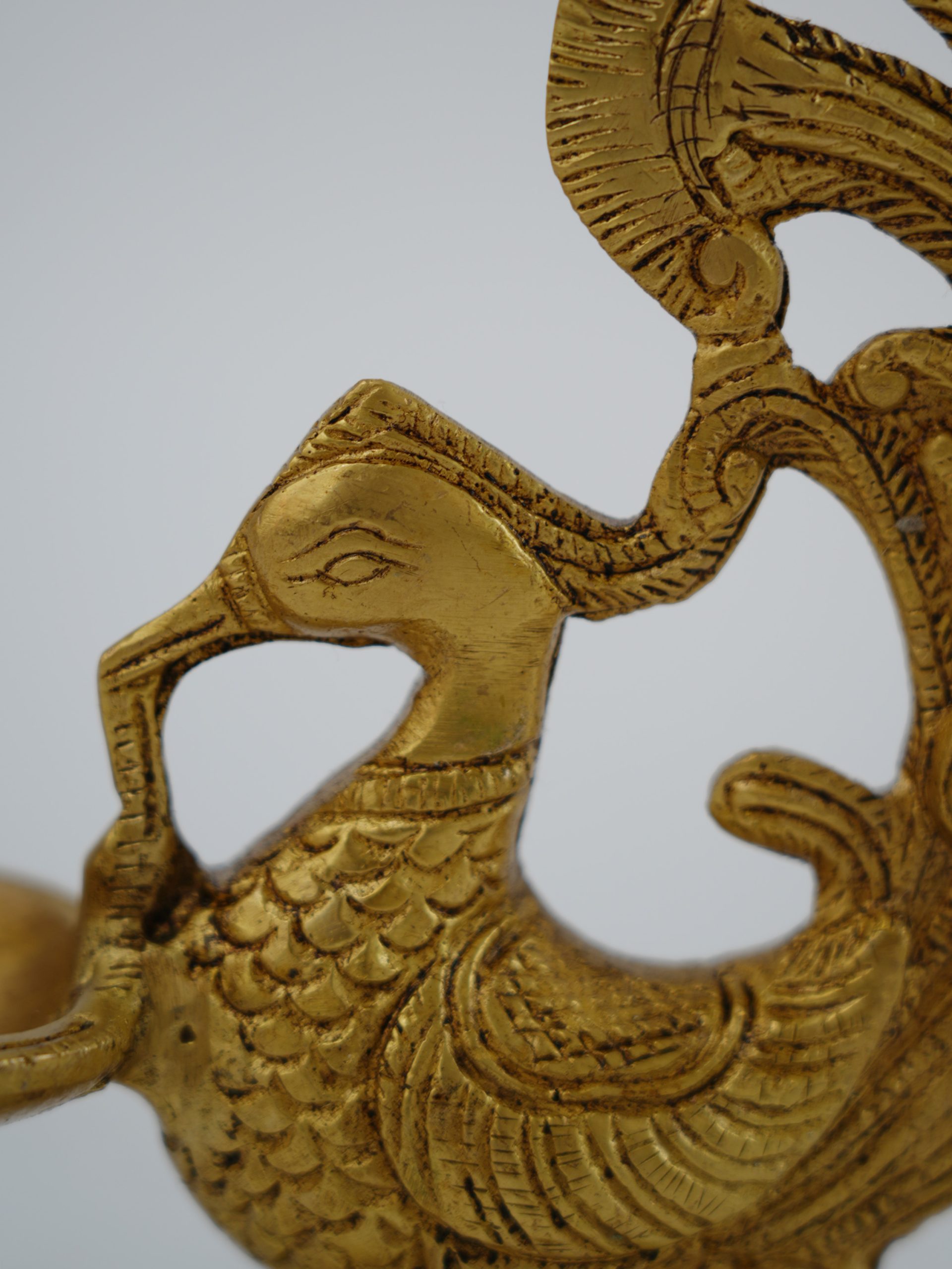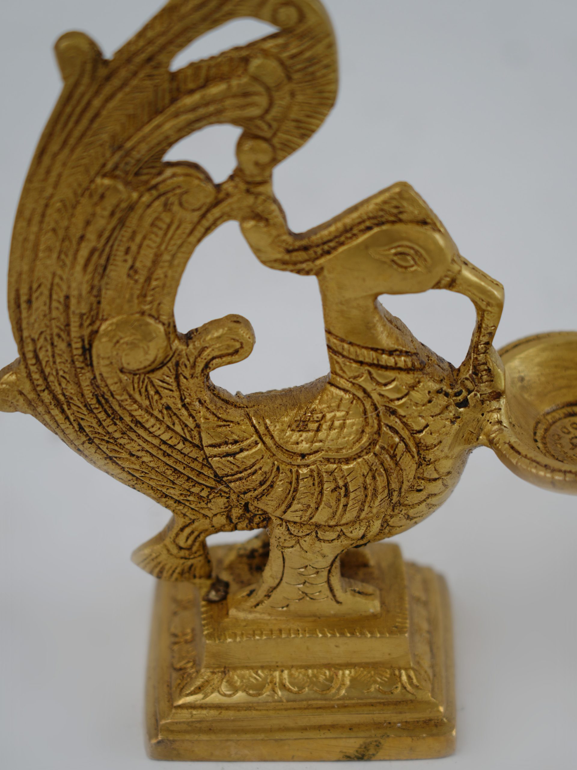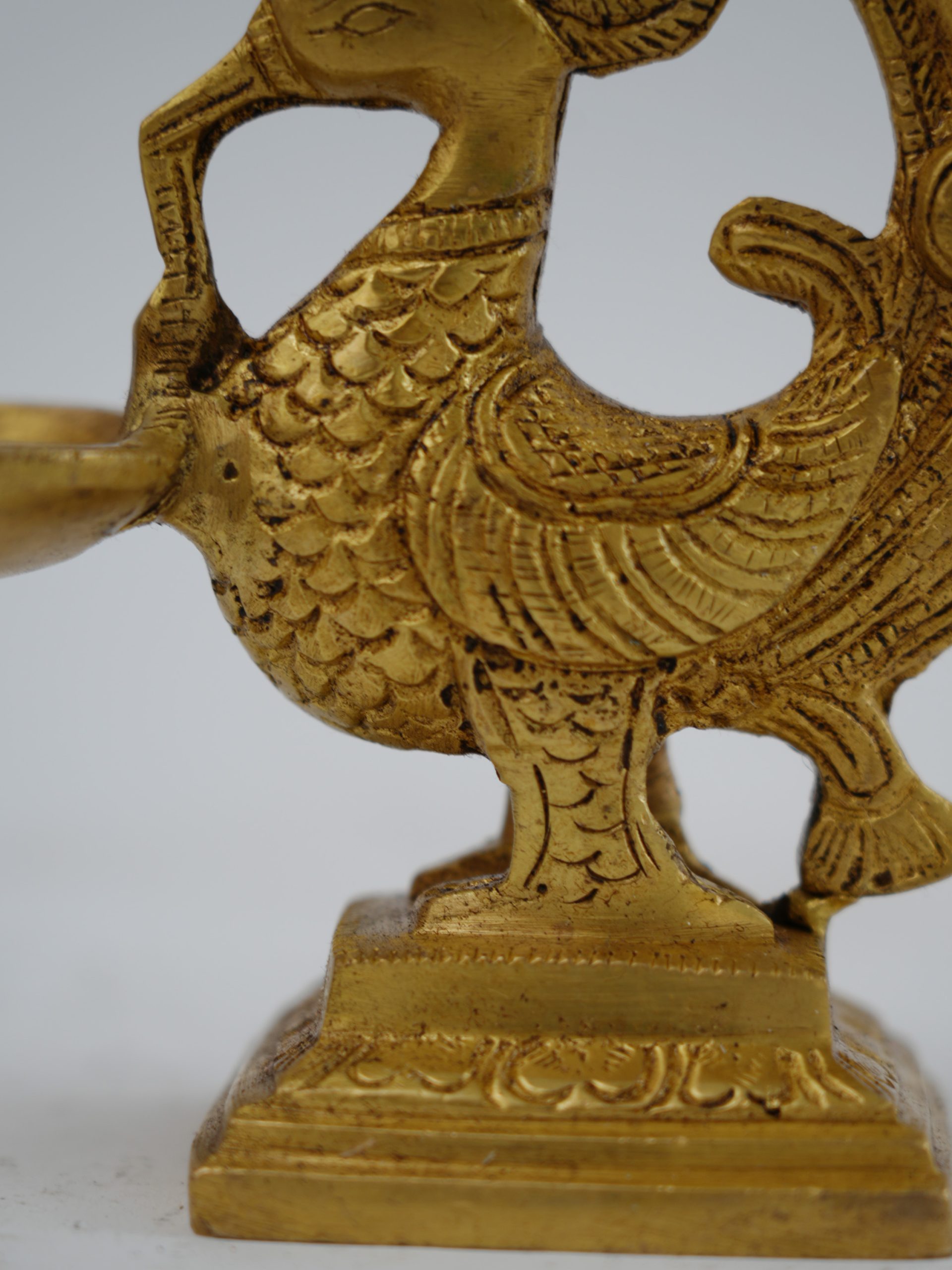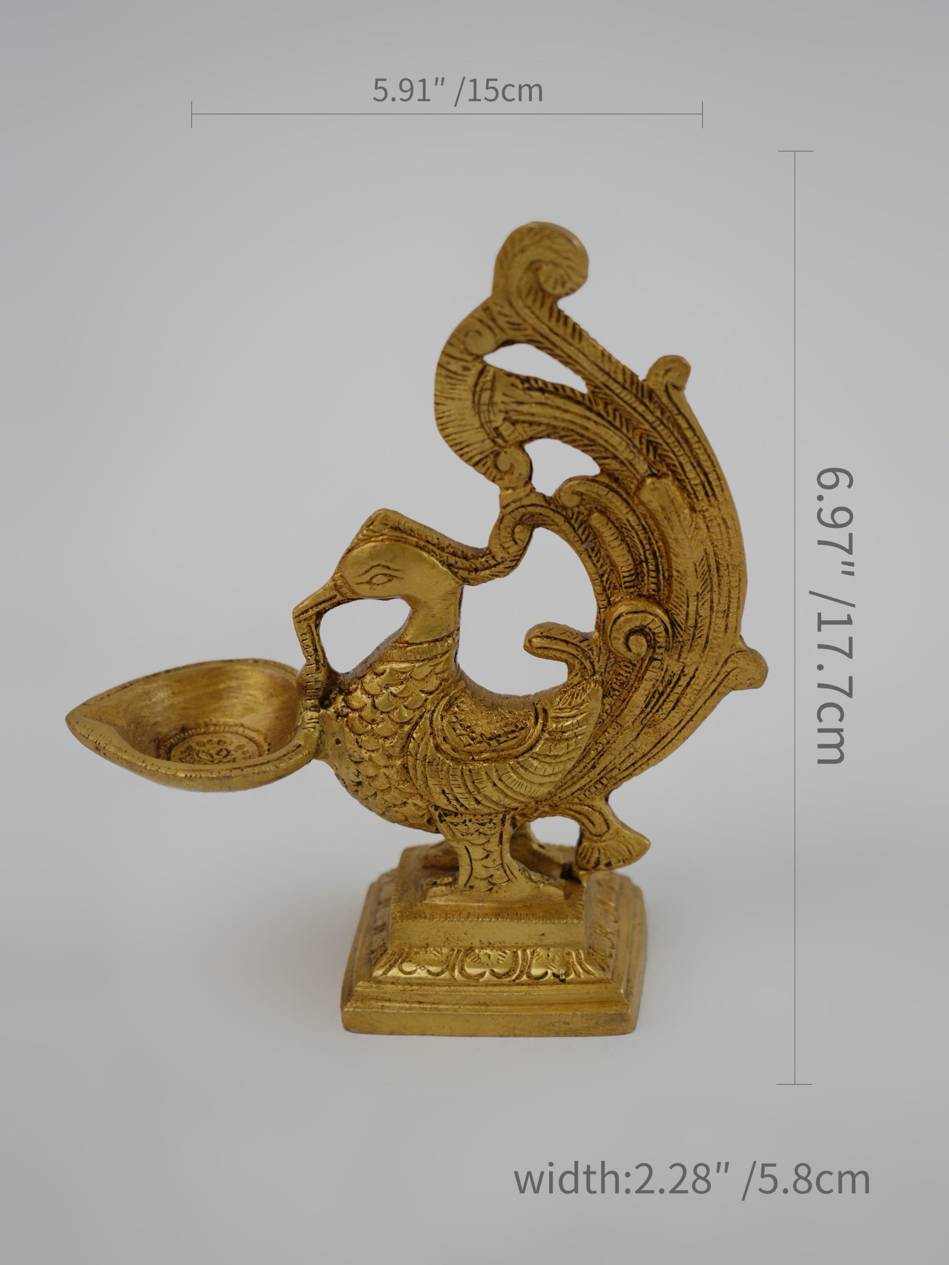 Copper Peacock Oil Lamp Container Vermilion Cone Incense Burner for Offering Sacrificial Candlesticks