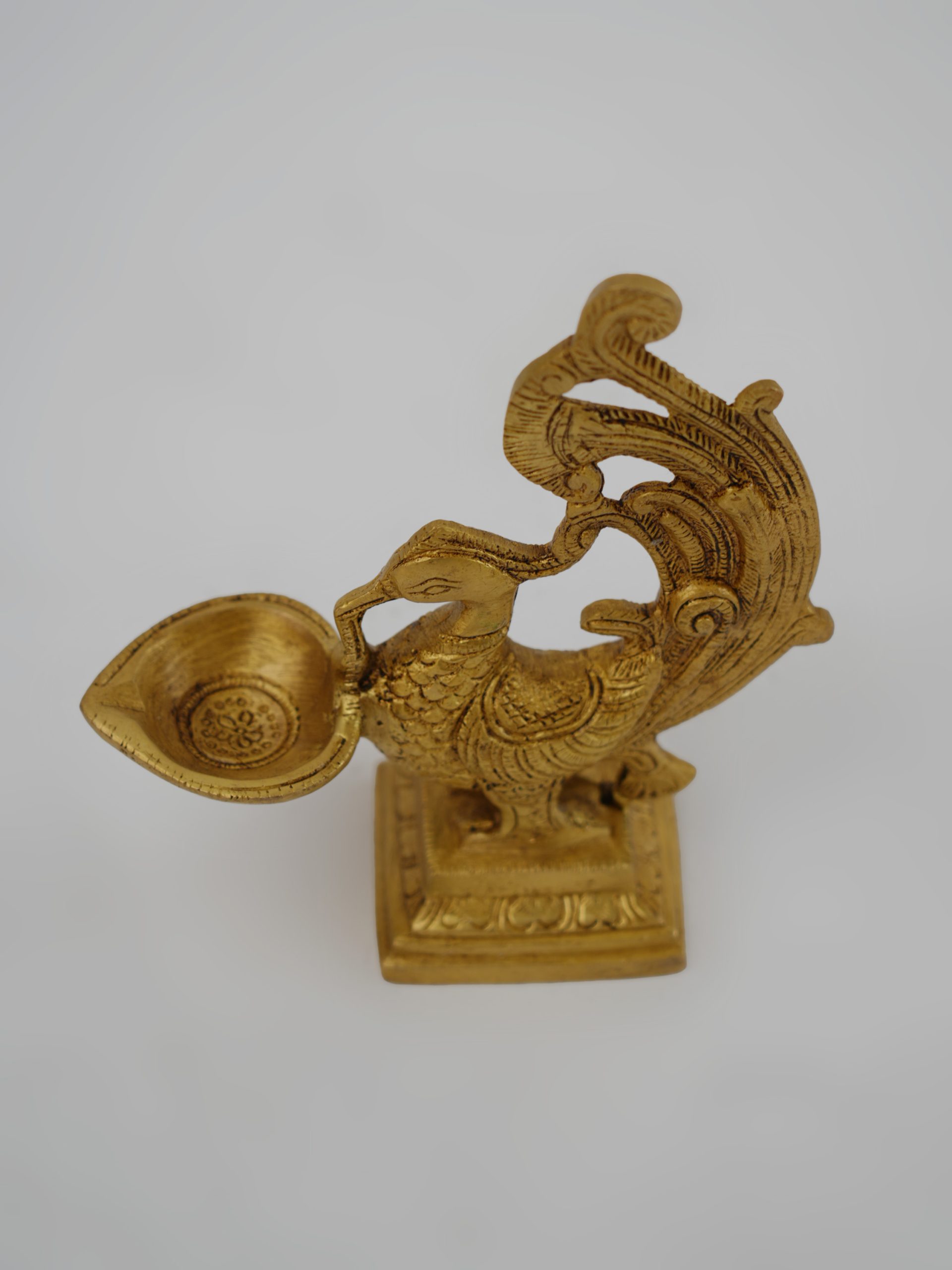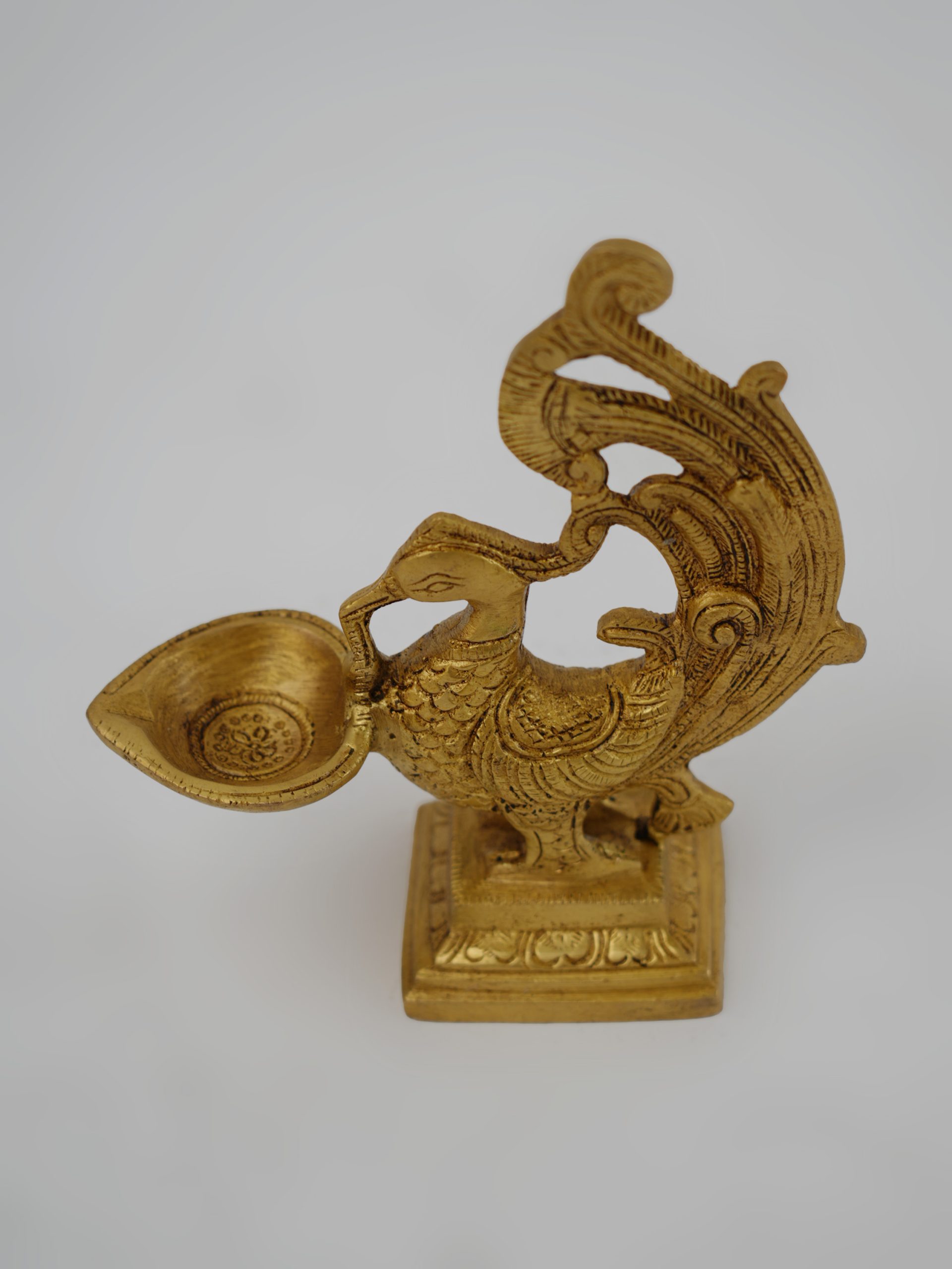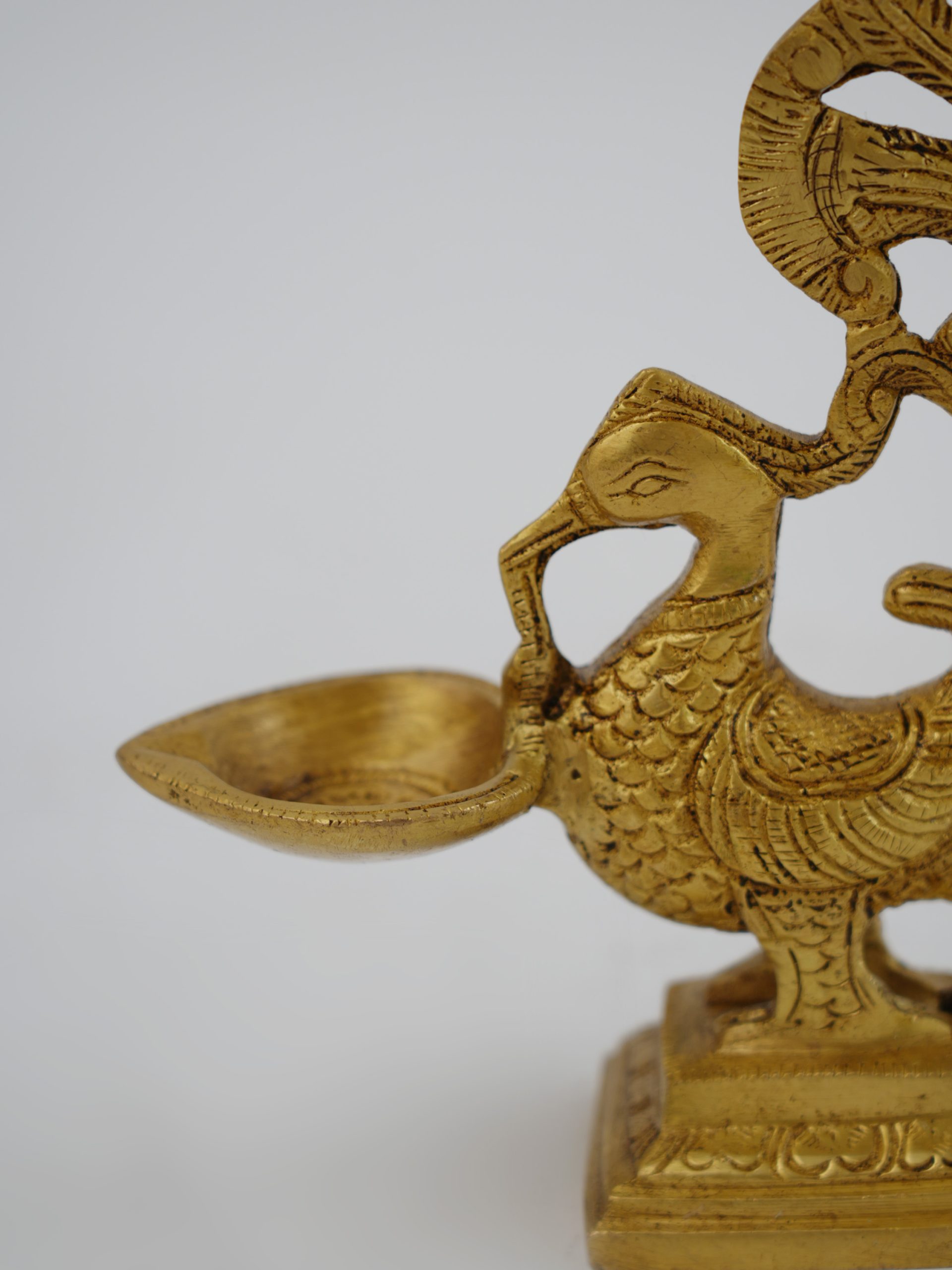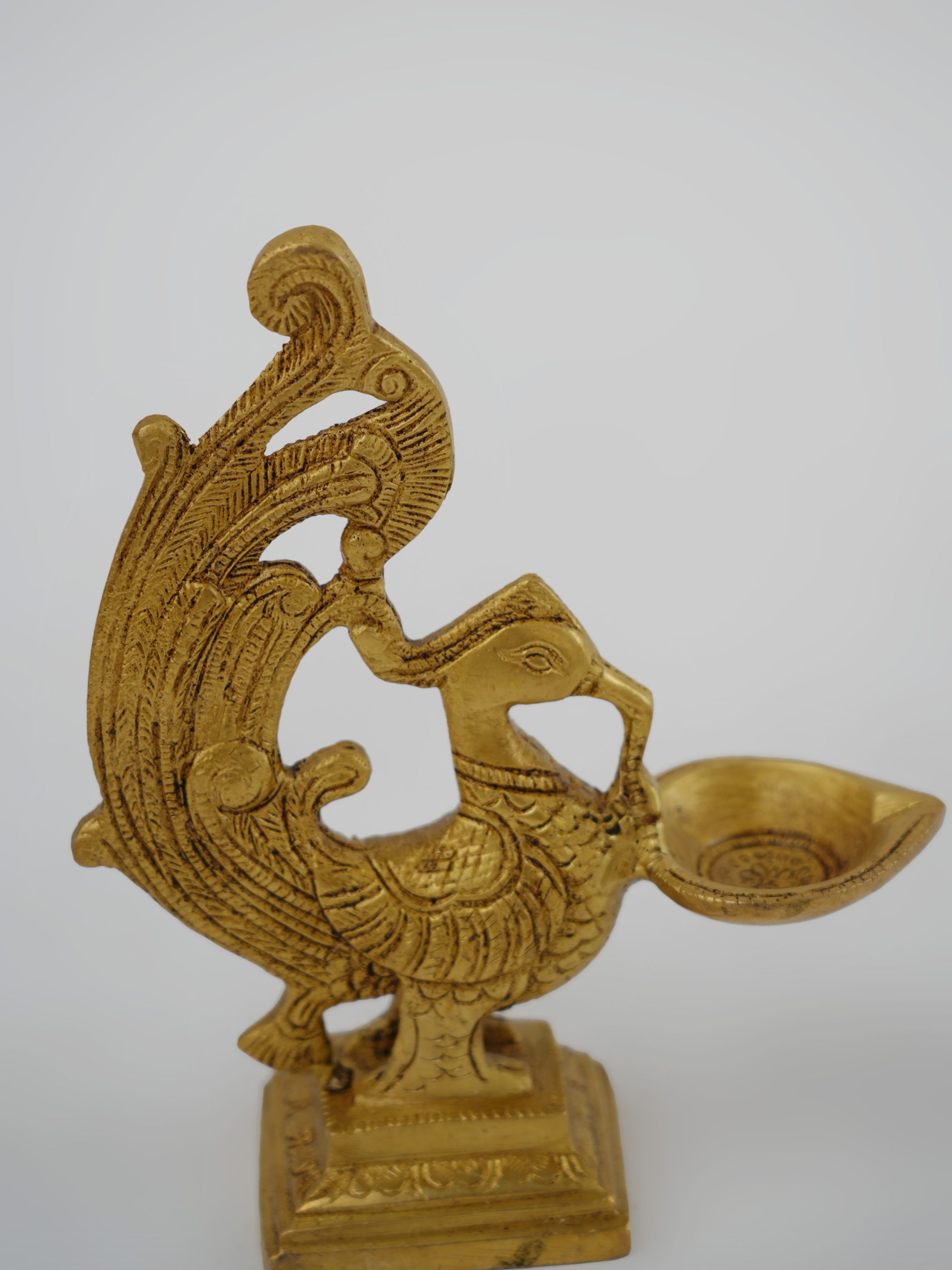 Copper Peacock Oil Lamp Container Vermilion Cone Incense Burner for Offering Sacrificial Candlesticks